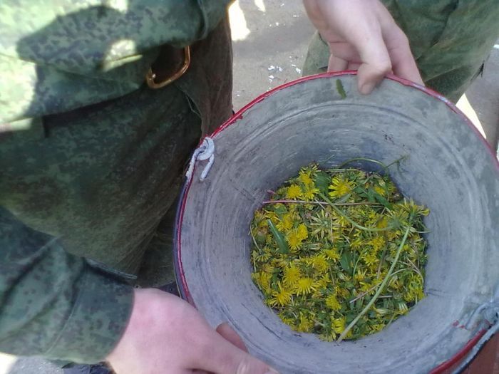 У военных начальников свои понятия о красоте, а потому нередко солдатам приходится выполнять довольно странные приказания. Например, в данном случае желтые одуванчики посчитали слишком «вульгарными» и приказали очистить территорию воинской части от них. ![]() ![]() ![]()