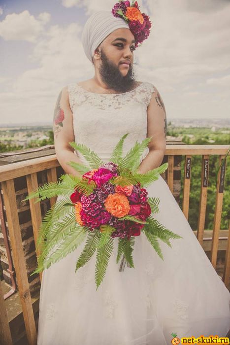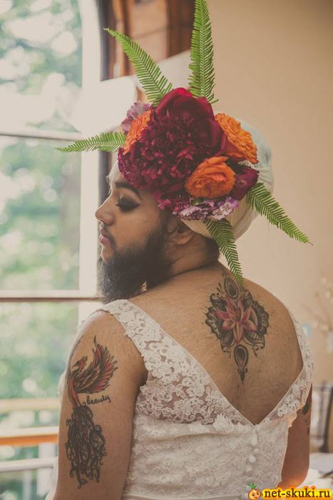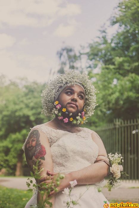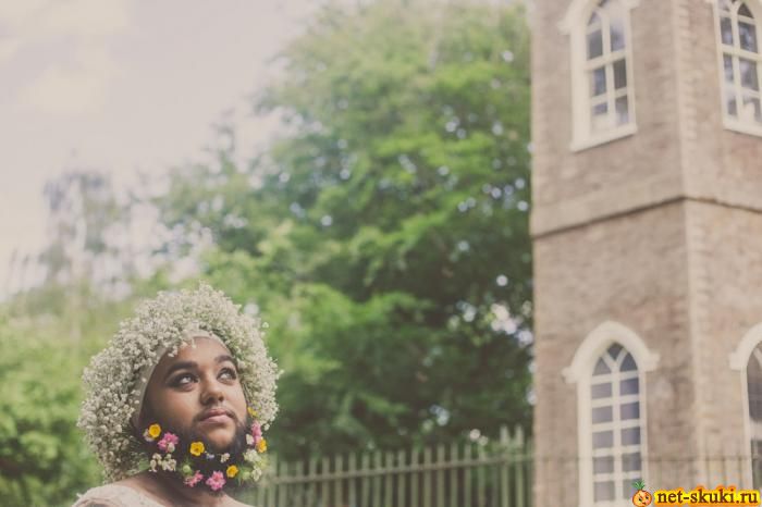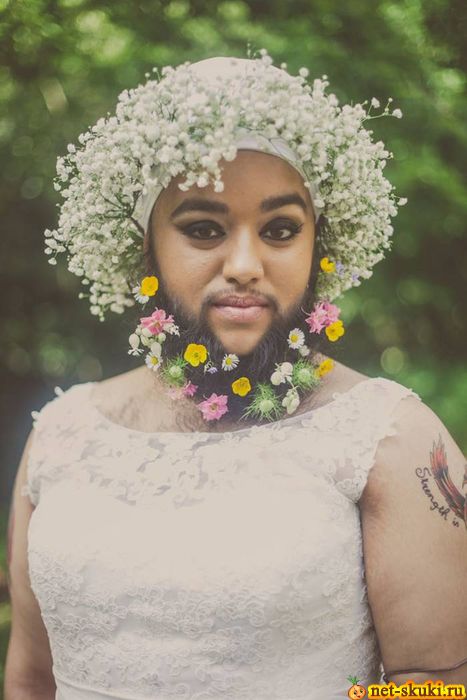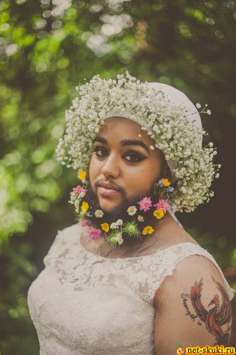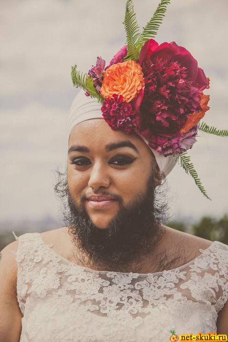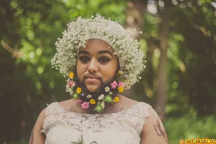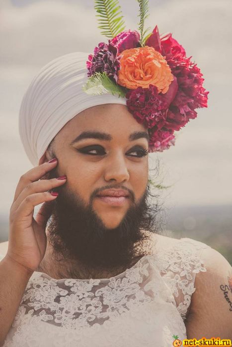 | Лондонский свадебный фотограф Louisa Coulthurst сделала серию снимков Харнаам Каур — девушки с бородой. У Харнаам Каур синдром поликистозных яичников — расстройство эндокринной системы, вызывающее серьезные гормональные дисбалансы. Из-за большого количества мужских гормонов у неё с 11 лет начали интенсивно расти волосы на лице. «Я обрабатывала свое лицо воском два-три раза в неделю», — вспоминает Каур. — «В те дни, когда я не могла вытерпеть боль, я просто брилась». Всё это время над школьницей постоянно издевались одноклассники и знакомые. Несколько раз её даже избили. Каур постоянно преследовали мысли о самоубийстве. В 16 лет из-за суицидальных мыслей она спряталась в своей спальне и не хотела никуда выходить. Однако постепенно внутри девушки вызрела мысль изменить свое отношение к жизни и полюбить себя такой, какой она есть на самом деле. Каур решила сохранить свою бороду, чтобы попытаться разрушить стереотип о том, как должна выглядеть женщина. «Я люблю свою бороду, она стала частью моего тела и я не хочу удалять ей. Любите себя, ведь вы являетесь только тем, что у вас есть», — говорит девушка.