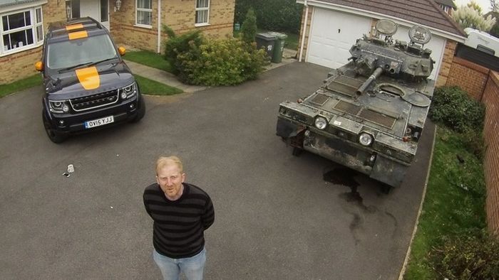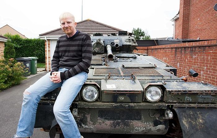 Как сообщает британской телеканал ITV, житель города Бристоль Джеф Вулмер просматривал лоты на популярном интернет-аукционе и спонтанно решил купить списанный легкий танк CVRT «Скорпион». Он сделал ставку в размере 9 000 фунтов стерлингов (13 900 долларов США) и вскоре забыл об этом. Спустя какое-то время 44-летнему мужчине позвонили и сообщили, что он выиграл данный лот, и спросили куда доставить бронетехнику. Джеф, инженер по профессии, сказал свой адрес и совершенно не подумал о том, что у него совершенно нет места для парковки танка. В спешке он переехал из 2-комнатной квартиры в частый дом, во дворе которого собирается заняться реставрацией танка. Джеф планирует не только разогнать 7-тонный танк до заявленной скорости 80 км/ч, но и привести в рабочее состояние его пушку. ![]() ![]() ![]() ![]() ![]()