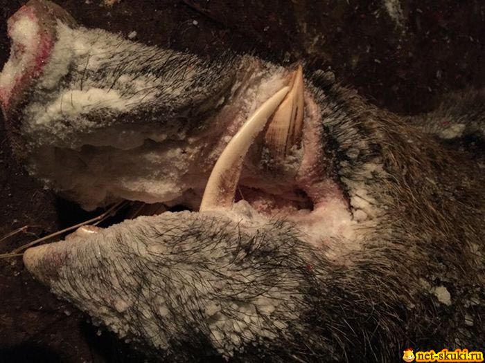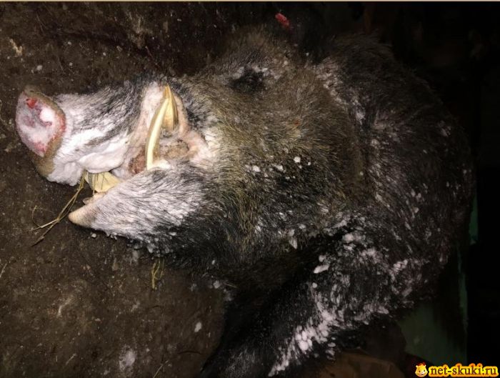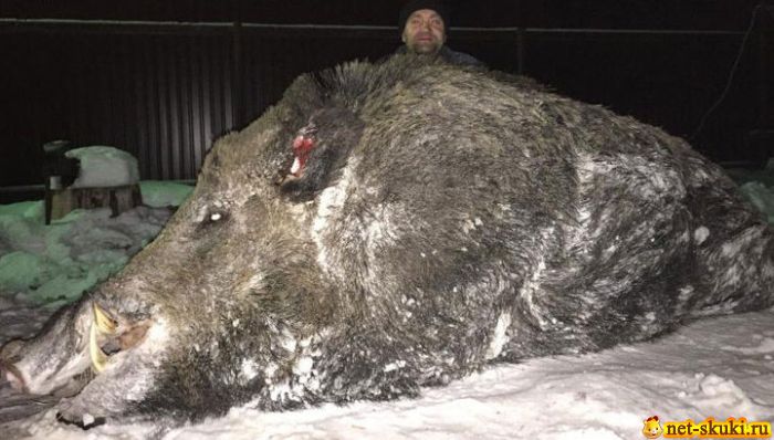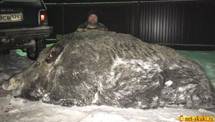 Предприниматель из Челябинска Петр Максимов, который 18 лет своей жизни увлекается охотой, сумел подстрелить гигантского кабана, который ничем не уступает медведю. По словам 36-летнего охотника, животное весило примерно полтонны, и было настолько большим, что его пришлось тащить по снегу за машиной. Кабана мужчина застрелил в пятницу 13-го ноября в лесах у поселка Шокурово. После первого выстрела в голову кабан лишь разозлился и бросился на своего обидчика, а повалился на землю только лишь после третьего выстрела. ![]() ![]() ![]()