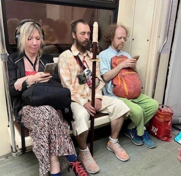 В метро всегда можно встретить какого-нибудь интересного персонажа, который обязательно отвлечет внимание.