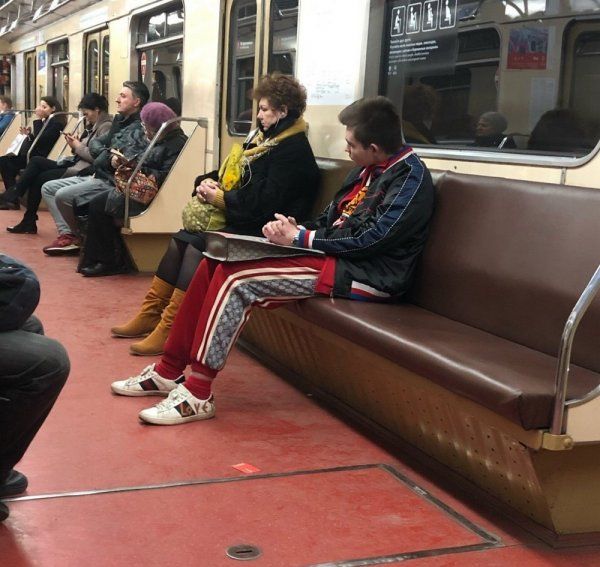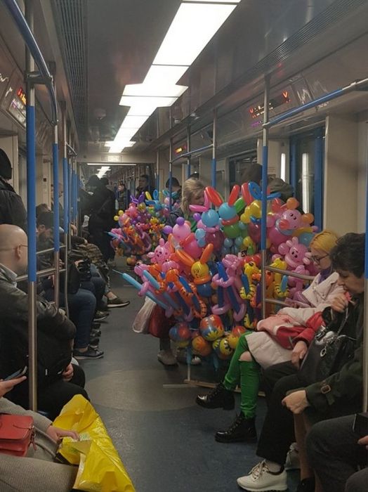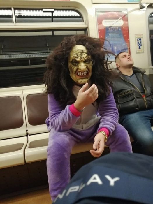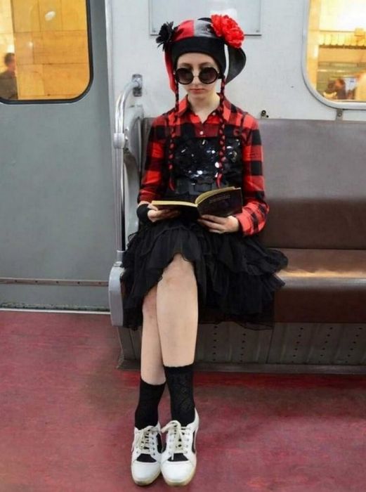 В метро всегда можно встретить какого-нибудь интересного персонажа, который обязательно отвлечет внимание.