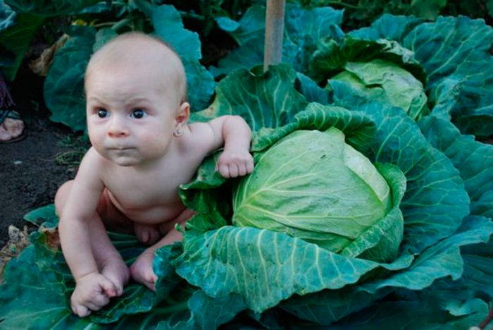 Позитивные фотографии с малышами в капусте. Хорошего настроения от просмотра.