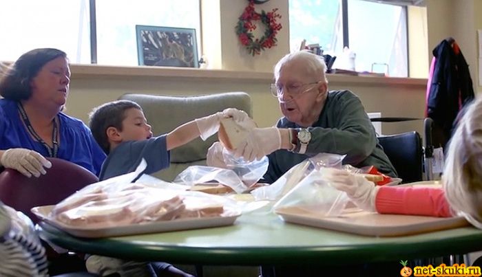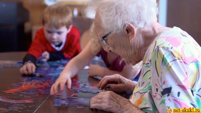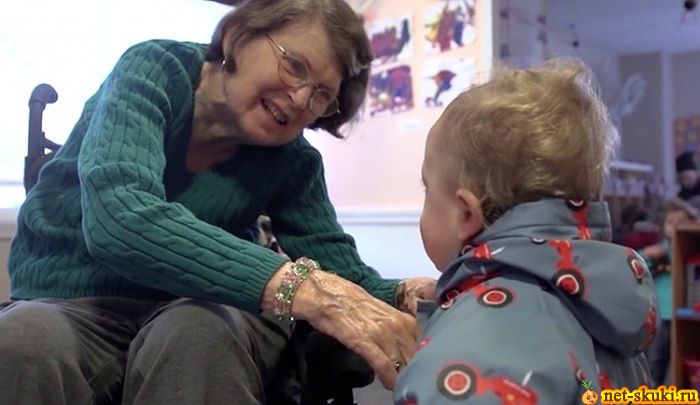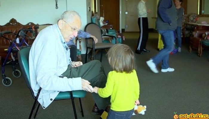 В американском городе Сиэтл, штат Вашингтон, находится самый уникальный дом престарелых, который совмещен с… детским садом. Подобное новшество стало частью новой программы Международного обучающего центра. Идея очень проста - пожилые люди, общаясь с детьми, получают большое удовольствие и чувствуют стимул продолжения жизни, а детишки учатся и развиваются благодаря помощи старшего поколения. Под одной крышей находится 400 пожилых людей и несколько десятков детей. Дети навещают пенсионеров 5 дней в неделю. Вместе они играют, читают, обучаются танцам, музыке и искусству, а также готовят обед и делают прочие увлекательные вещи. У ребятишек сразу же увеличивается число любящих их бабушек и дедушек, да и сами пенсионеры не против дать им эту любовь, а также передать свой богатый жизненный опыт. Недавно об уникальном доме для престарелых был снят документальный фильм «Present Perfect». Его режиссер Эван Бриггс отметил, что пенсионеры здесь необычайно активные и энергичные, а дети более сообразительные, чем их сверстники.