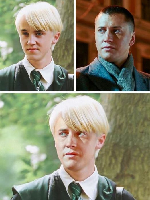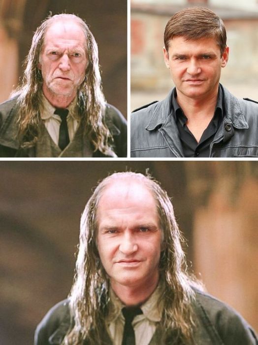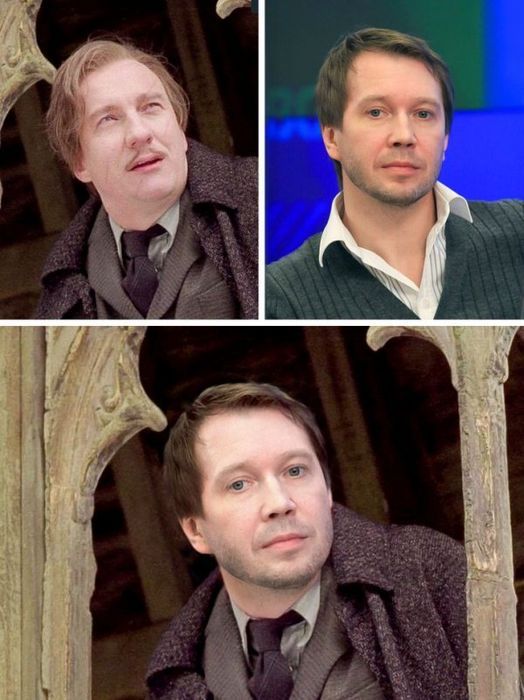 | Представьте, что в параллельной вселенной история сложилась так, что знаменитую серию фильмов о "Гарри Поттере" сняли в России. Пользователи соцсетей решили пофантазировать и вообразить наших актеров в образах главных героев франшизы. В целом получился весьма забавный и занятный эксперимент. Гарри Поттер — Иван Янковский Гермиона Грейнджер — Лянка Грыу Рон Уизли — Виктор Хориняк Драко Малфой — Павел Прилучный Альбус Дамблдор — Станислав Любшин Северус Снегг — Юрий Чурсин Минерва МакГонагалл — Людмила Чурсина Лорд Волан-де-Морт — Виктор Сухоруков Рубеус Хагрид — Сергей Селин Сириус Блэк — Александр Суворов Люциус Малфой — Олег Меньшиков Нарцисса Малфой — Марина Александрова Беллатриса Лестрейндж — Настасья Самбурская Квиринус Квиррелл — Антон Шагин Златопуст Локонс — Дмитрий Харатьян Римус Люпин — Евгений Миронов Петуния Дурсль — Юлия Рутберг Вернон Дурсль — Роман Мадянов Седрик Диггори — Алексей Воробьев Невилл Долгопупс — Александр Ильин Молли Уизли — Елена Валюшкина Джинни Уизли — Аглая Тарасова Фред и Джордж Уизли — Павел Табаков Дадли Дурсль — Михаил Казаков Флёр Делакур — Светлана Ходченкова Плакса Миртл — Нелли Уварова Сивилла Трелони — Ингеборга Дапкунайте Игорь Каркаров — Владимир Вдовиченков Аргус Филч — Игорь Лифанов Долорес Амбридж — Светлана Немоляева