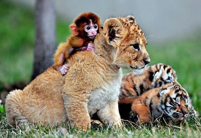 Позитивные фотографии с примерами необычной дружбы среди животных.