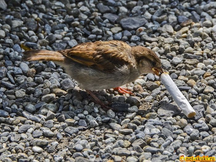 Городские птицы нередко вьют гнезда, используя окурки. Дело в том, что бычки защищают от паразитов, так что птенцы растут крепкими и здоровыми. Хоть кому-то польза от вредной привычки, которая изрядно вредит здоровью человека.