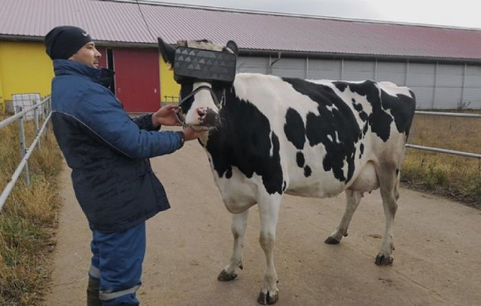 На ферме в окрестностях Красногорска Московской области проведены первые испытания очков виртуальной реальности (VR) для коров. Авторы новинки предполагают что животным в очках будет веселее, а веселая корова должна давать вкусное молоко.