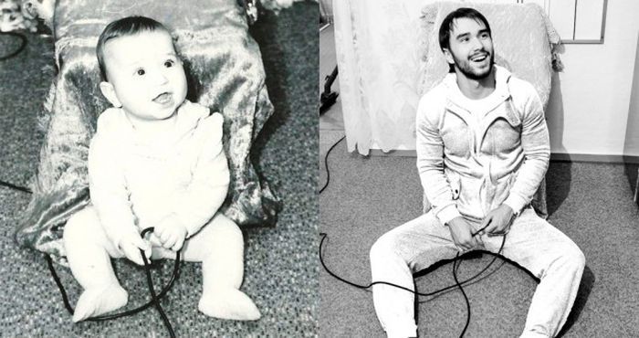 Сын решил поздравить отца с юбилеем и пополнил семейный альбом новыми фотографиями на старый лад.