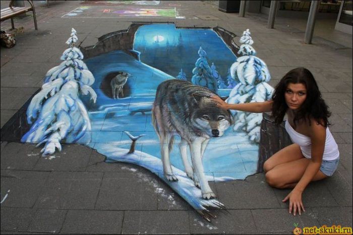 Художник Николай Арндт родился в небольшом городке Гаврилов Посад. В 2006 году переехал в Германию. С 2009 года занимается уличными рисунками на тротуарах в технике 3D. Участвовал во многих фестивалях, где его работы занимали призовые места.