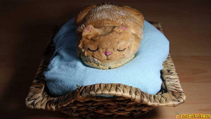 Для создания этого хлеба используется самый простой рецепт теста. Кулинар и пекарь Lou Lou из магазина Lou Lou P’s Delights просто наметила в тесте детали будущей кошки тельце и мордочку.