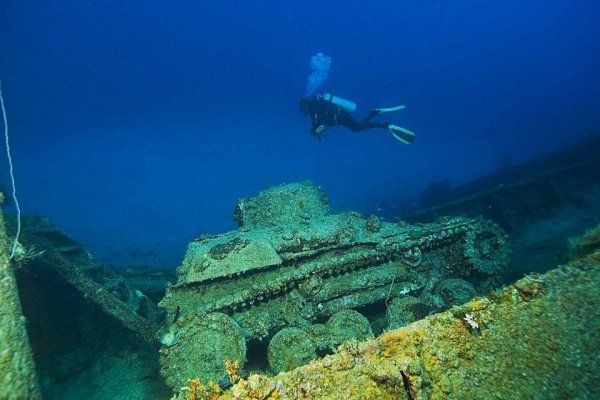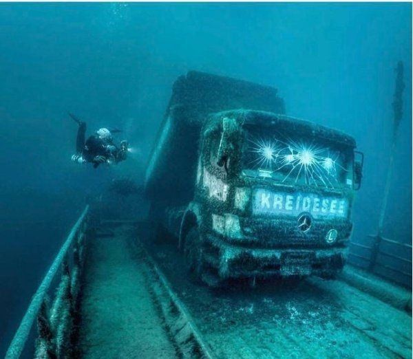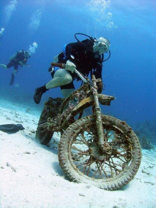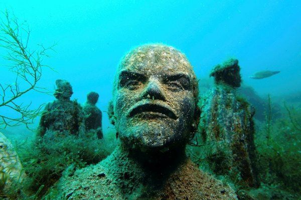 | В морских глубинах есть много чего интересно. А порой подводные объекты становятся настоящей неожиданностью даже для самого опытного дайвера. Давайте поглядим, что таится на дне морском. Канкунский подводный музей Подводный музей в Канкуне — одна из главных достопримечательностей Мексики, которая приносит особую радость заядлым дайверам. Ещё этот уникальный музей часто служит отвлекающим манёвром для людей, которые уж очень любят что-то захватить с собой на сушу с морского дна, например кораллы, что приносит огромный вред экологии. А так, все при деле, рассматривая экспонаты этого удивительного места. Мозаика, найденная в подводных руинах затонувшего города Байи Ещё один подводный арт-объект из музея в Канкуне Подводный музей MUSAN, который был открыт на Кипре Все скульптуры этого музея были сделаны из материалов, которые привлекают морских обитателей, поэтому со временем природа внесёт свои коррективы в это место, где искусство находится под водой. Подводная статуя в затонувшем римском городе Байи Церковь в воде Статуя Джейсона Вурхиза Статуя знаменитого убийцы Джейсона Вурхиза из фильма «Пятница 13-ое» была установлена в далёком 2013 году. Но по сей день он ждёт встречи с новыми дайверами, которые от незнаний или неожиданности увидеть этого старого приятеля, могут потерять рассудок или завязать с дайвингом навсегда. Моаи Машина, обнаруженная на морском дне. Таких объектов в глубинах вод тысячи Табличка с предупреждениями, которая стоит у подводной пещеры в Мексике В этой пещере нет ничего стоящего, за что можно было бы отдать свою жизнь! Не переступайте эту черту. Если кратко, то вход запрещён! Ещё одно средство передвижения, найденное под водой, на этот раз — танк Поразительная и масштабная сцена из подводного музея в Канкуне Владимир Ильич, здравствуйте Подводная статуя, от которой сложно оторвать взгляд Мотопрокат под водой