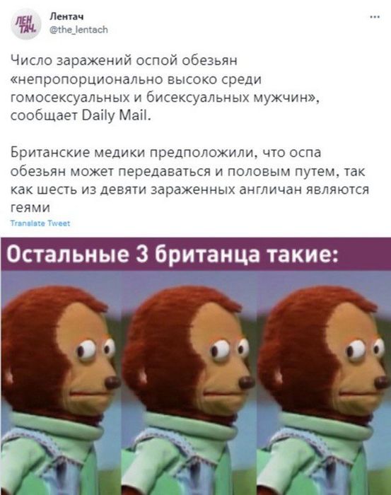27.05.2022 Интернет сообщество шутит про оспу обезьян |