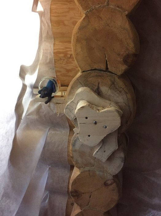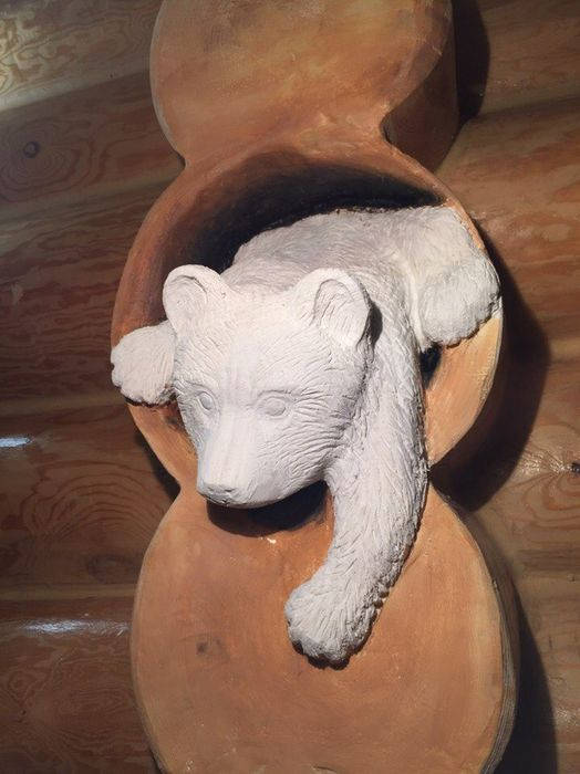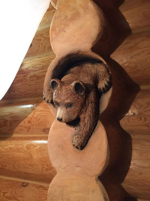 В умелых руках вся работа спорится. Настоящий мастер своего дела, украсил бревенчатый сруб. Смотрится очень мило.