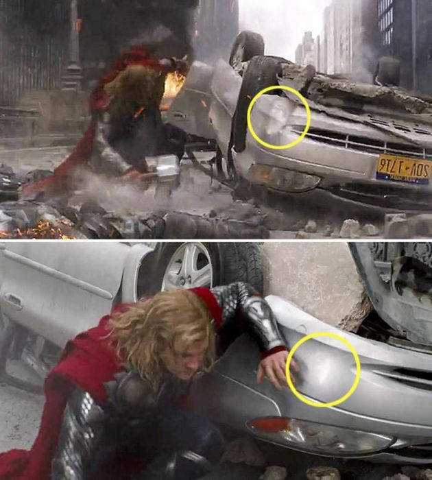 | Киноманы часто развлекают себя тем, что ищут ошибки и несоответствия в фильмах, которые они смотрят. Как только новый фильм появляется в кинотеатрах, острые взгляды наблюдателей замечают каждое крошечное изменение во внешности персонажа или в положении объекта. Далее вас ждет список интересных киноляпов, которые, однако, могут оказаться слишком тонкими для многих людей. Большинство из них вы, вероятно, никогда не замечали, и будет действительно непростительно, если вы так и не узнаете о них. Читайте дальше, и вы никогда не сможете смотреть эти фильмы так же, как и раньше! «Сумерки» Если внимательно посмотреть фильм, то можно увидеть отражение камеры в окне автомобиля. На самом деле это общая ошибка, о которой забывают многие режиссеры. Подобное произошло в «Сумерках». «Железный человек 2» В начале фильма мы видим, как Тони Старк выступает в своем шоу, одетый в белую рубашку. Затем он на мгновение исчезает с экрана, появляется уже в черной рубашке и остается в ней до конца шоу. «Дэдпул» Если вы внимательно посмотрите сцену, в которой Дэдпул мчится по шоссе, то заметите, что в один момент за его спиной ничего нет, а в следующий там появляются рукоятки от мечей. В сцене, снятой в баре, татуировка на шее Ванессы появляется и снова исчезает. «Форрест Гамп» В сцене встречи Форреста с Дженни вы можете увидеть за ее спиной утюг, который, кажется, движется сам по себе. «Гарри Поттер и Философский камень» Когда тетя Петуния поздравляет Дадли с днем рождения, стоя за его спиной, на ее шее можно заметить провод от микрофона. Когда Гарри приближается к столу Гриффиндора после церемонии сортировки, он занимает место рядом с Роном. Но в следующей сцене он уже сидит между Гермионой и Перси. Вот что делает волшебство! «Титаник» Когда Роза смотрит на огромный корабль, ее родинка находится на левой щеке, но затем она оказывается на правой. Для того чтобы освободить Джека от наручников, Роза разбивает стеклянный противопожарный щит, в котором находится топор. От удара все стекло вылетает, но когда она хватает топор, его осколки снова на месте. Кажется, существовало два корабля. Иначе, как можно объяснить меняющийся внешний вид палубы? «Криминальное чтиво» Прежде чем сделать Мии инъекцию адреналина, Винсент рисует на ее груди толстую красную метку. Но когда девушка «возрождается», метка исчезает. Когда Миа и Винсент сидят в кафе, она курит, выбирая заказ. Если смотреть со стороны, она держит сигарету в левой руке; а если с фронта – в правой. «Пятый элемент» Перед прыжком Лило пугается монорельса, который проезжает на стене рядом с ней. В следующий момент она прыгает, и мы видим, что сцена полностью изменилась: монорельса нет, а здания выглядят совершенно иначе. «Рапунцель: запутанная история» В сцене, где Флинн пробирается на башню к Рапунцель, мать Готель закалывает его своим кинжалом, однако на лезвии не остается крови. Хотя для этого есть хорошее объяснение: согласно рейтингу фильма, на экране не должно быть никакой крови. Когда умирающий Флинн касается волос Рапунцель, кажется, что кандалы на его руках исчезли. Конечно, они могли бы скользнуть по его руке, но ведь в следующий момент видно, что они вернулись на прежнее место. «Бесславные ублюдки» В одной из сцен эмблемы на груди немецкого офицера исчезают, а затем вновь появляются. «Аватар» Когда Джейк откры