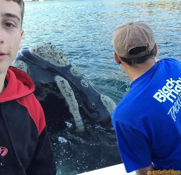 В гавани, расположенной к северу от Сиднея, кит обратился за помощью к рыбакам, чтобы те избавили его от мусора, застрявшего у него во рту. Сперва млекопитающее подплыло к лодке и слегка подтолкнуло ее, обратив на себя внимание людей. Затем он высунул из воды пасть, в которой застрял мусорный пакет и обрыв лески. Пока один из молодых людей доставал инородные предметы, второй делал селфи. Чтобы отблагодарить людей за помощь, кит стал плавать вокруг лодки и хлопать плавниками. |