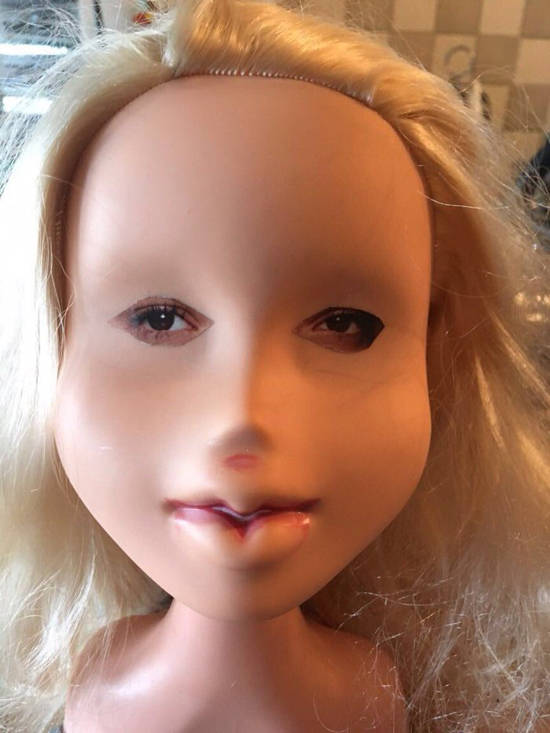 Отец хотел почистить куклу дочери спиртом и случайно стер ей лицо Чтобы как-то исправить ситуацию, он решил сделать ей новые глаза, вырезав их из журнала
