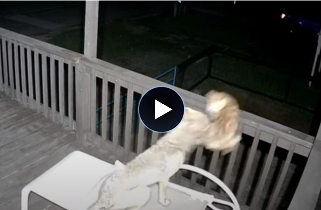Камера наблюдения запечатлела, как на крыльцо дома забрел койот, кстати довольно опасный хищник. Койот видимо хотел поужинать котом, но коту удалось спастись... |