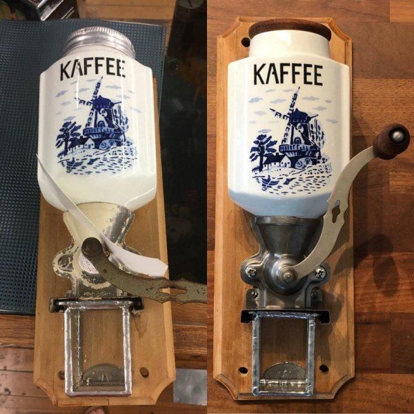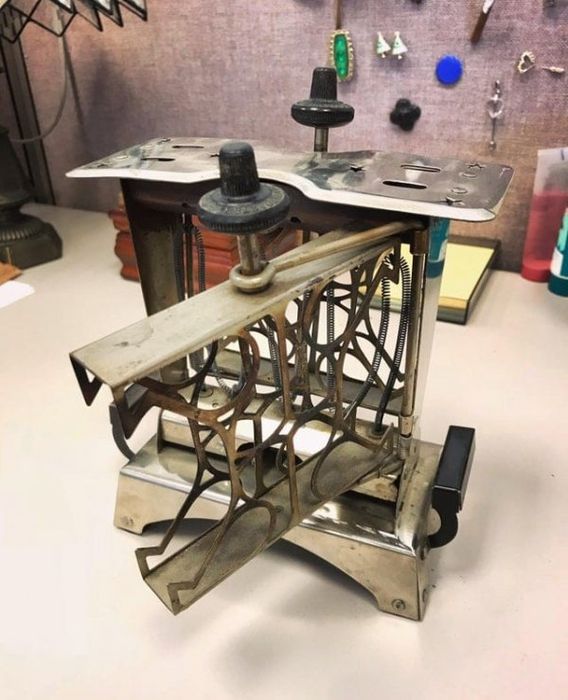 | Подборка фотографий с необычными винтажными приспособлениями для кухни из прошлого. Яйцеварка, которой около 60 лет Взбиватель для яиц 1930-х годов Винтажный тостер Устройство для приготовления пончиков Пистолет для печенья и декорирования выпечки Винтажный блендер Соковыжималка Отреставрированная винтажная настенная кофемолка Sony была основана в 1946 году. Эта электрическая рисоварка была их первым продуктом Устройство для красивой сервировки масла Измельчитель орехов Приспособление для измельчения фруктов и ягод, чтобы сделать из них джем или желе Настенный консервный нож Я нашёл старую травяную мельницу Несколько старых формочек, которые когда-то были у бабушки моей подруги