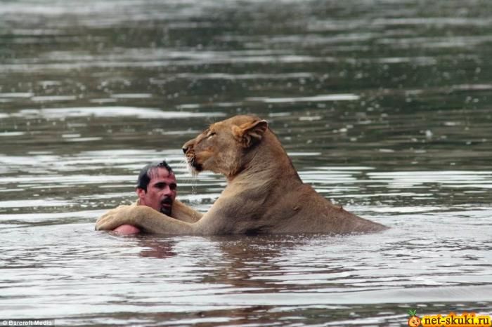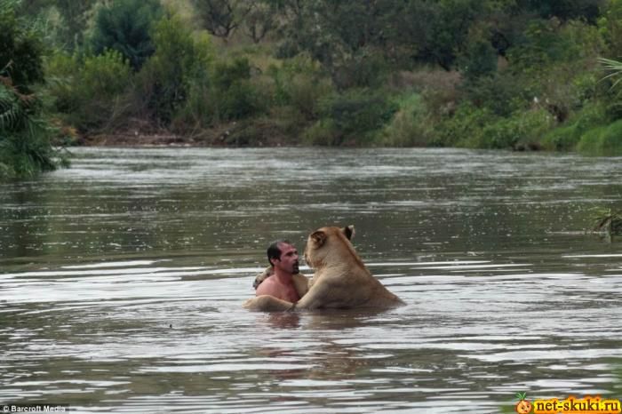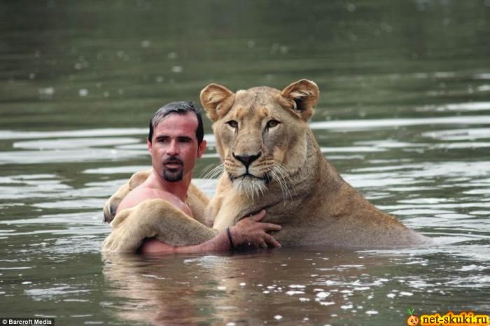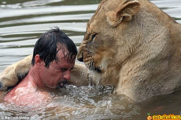 Кевин Ричардсон, зоолог и специалист по поведению животных очень любит искупнуться с львами. Они его уважают как своего, но до поры до времени. Видимо они тоже специалисты по поведению человека в дикой природе и стоит ему нарушить их законы то данный дядечка в секунду превратиться в завтрак. ![]() ![]() ![]()