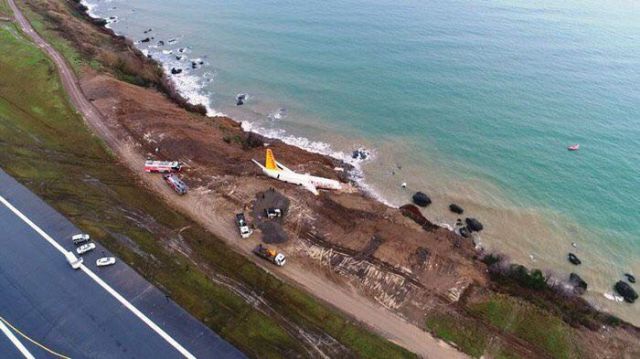 В субботу вечером, 13 января, в аэропорту турецкого города Трабзон на побережье Черного моря, пассажирский самолет выкатился за пределы взлетно-посадочной полосы и едва не скатился в море. Инцидент произошел с самолетом Boeing 737-800 авиакомпании Pegasus, прилетевшим из Анкары. Сообщается, что на борту авиалайнера находились 168 человек, никто из них не пострадал, но зато возникла паника.