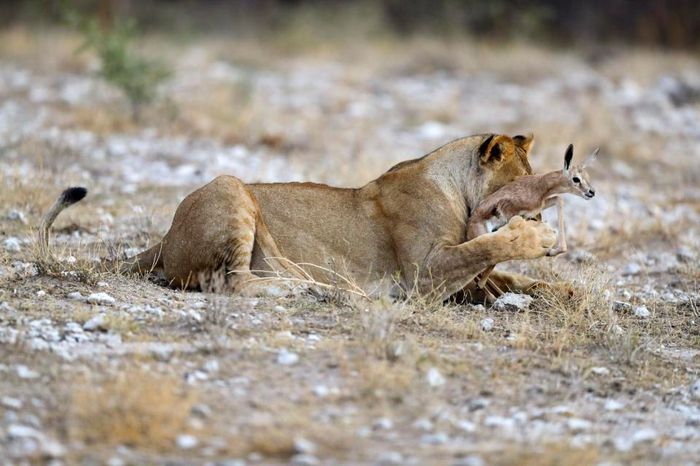20.02.2018 Львица заботится о маленькой антилопе |