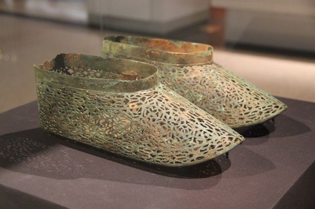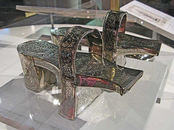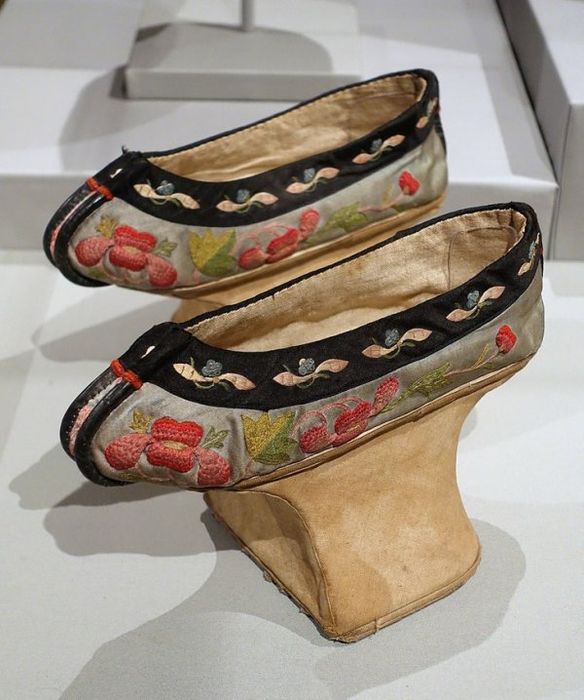 | Есть мнение, что обувь это второе лицо человека. В прошлом модные тенденции были весьма необычными, особенно, если сравнивать их с современными. Некоторые экземпляры выглядят так странно, что непонятно, как же их вообще могли носить? Кожаные туфли для забинтованных ног Китайские туфли для забинтованных ног, 1911 год. Представительницы ханьской народности бинтовали стопы, чтобы остановить их рост. Нога идеального размера была не больше 8 см На такой платформе ходила маньчжурская дворянка в середине XIX века Этим кожаным туфлям больше 1 000 лет. Египтяне носили их в V–VIII веках н. э. Пара детских кожаных ботинок, начало XX века Обувь из позолоченной бронзы периода Троецарствия, Корея Французские вышитые тапочки удивительной красоты. Кто-то расхаживал в них по дому в I половине XIX века Эти керамические туфли с позолотой были специально сделаны для Всемирной выставки 1904 года Тапочки, вышитые бисером, 1906 год Свадебные туфли с пряжками, Англия, 1740-е годы Эти мокасины носили в 1880-х гуроны — коренные жители Канады Итальянские туфли начала XIX века. Говорят, что их носил папа римский Бенедикт XV Сапоги племени апачей, 1890 год Налины надевали, чтобы не ступать по грязной воде и мылу в саунах. Эта серебряная пара была свадебным подарком турецкой невесте в начале XX века Выглядит устрашающе, не правда ли? В XIX веке французы носили такие сабо для чистки каштанов