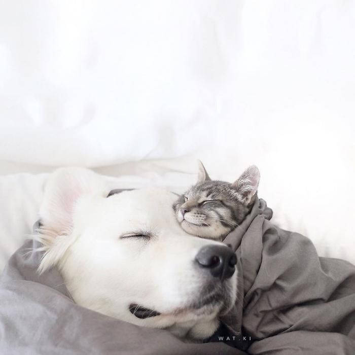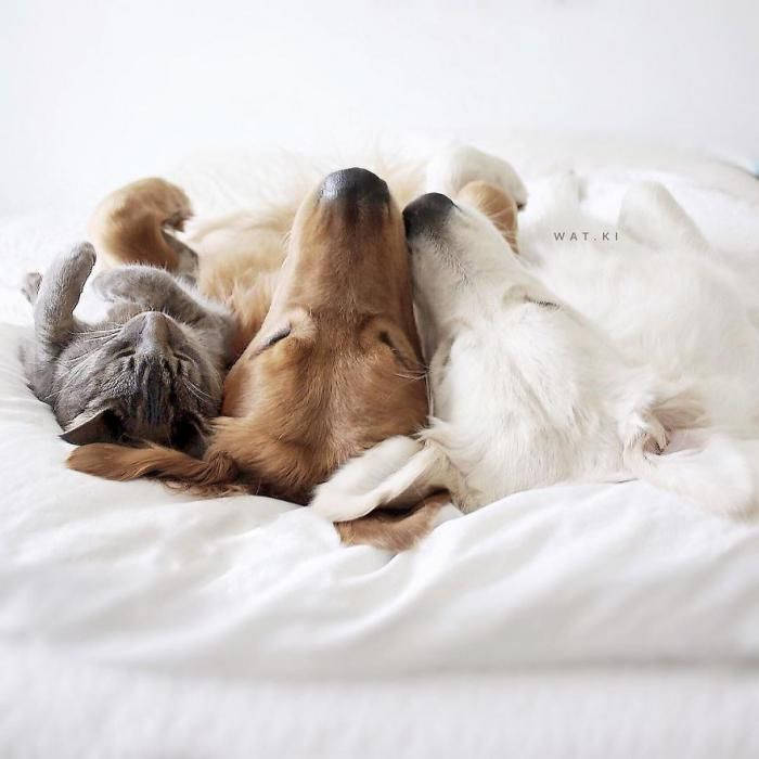 Данная публикация посвящена трем лучшим друзьям, впрочем, не совсем обычным. Все привыкли, что собаки гоняют котов, а кошки боятся сторожевых псов. Однако возможны дружеские отношения между этими животными, хотя это и является редкостным явлением. Представляем вашему вниманию Кико и Уотсона. Золотистые ретриверы по праву могут гордиться дружбой с Гарри. Этот удивительный кот ни на кого не променяет своих лучших приятелей. Друзья живут в совершенной гармонии, разделяя страсть ко сну. Владелец этих милых животных любит фотографировать своих питомцев, что дает и нам возможность взглянуть на необычную дружбу. Source |
