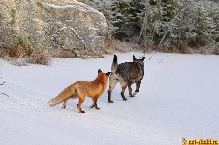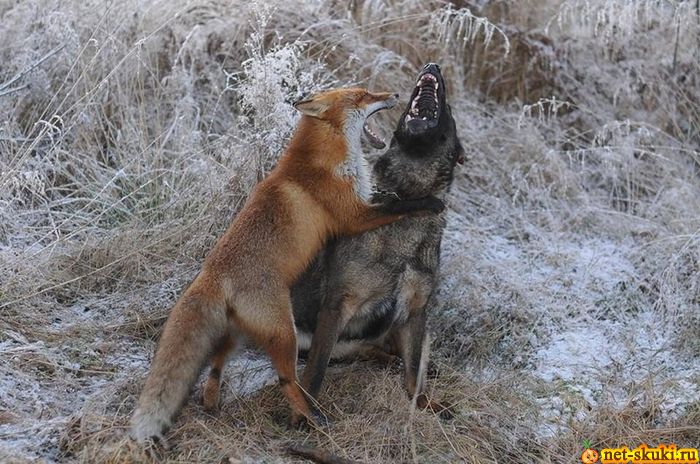 | Фотограф стал свидетелем очень необычной дружбы между лисой и собакой. Какой же всё-таки необычный бывает этот животный мир... ![]() ![]() ![]() ![]() ![]() ![]()