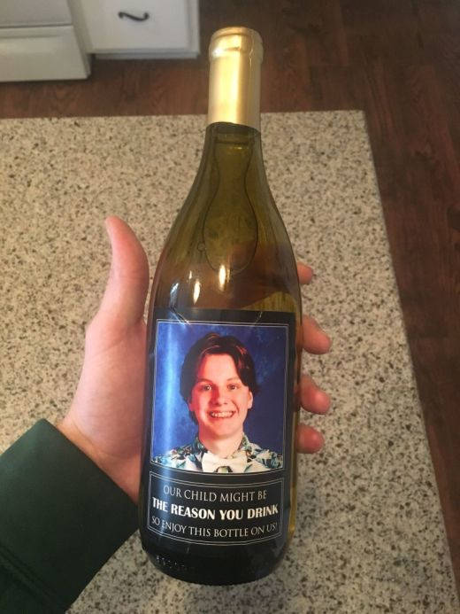 Мэри и Пол Соммерс из американского штата Огайо, зная каким трудным может быть их сын, решили подарить его школьным преподавателям необычные подарки на Рождество. Это бутылки вина, на этикетке которых красовалась фотография сына. "Наш ребенок может быть причиной, по которой вы пьете, так наслаждайтесь этой бутылкой от нас", - говорится в надписи на бутылке.
