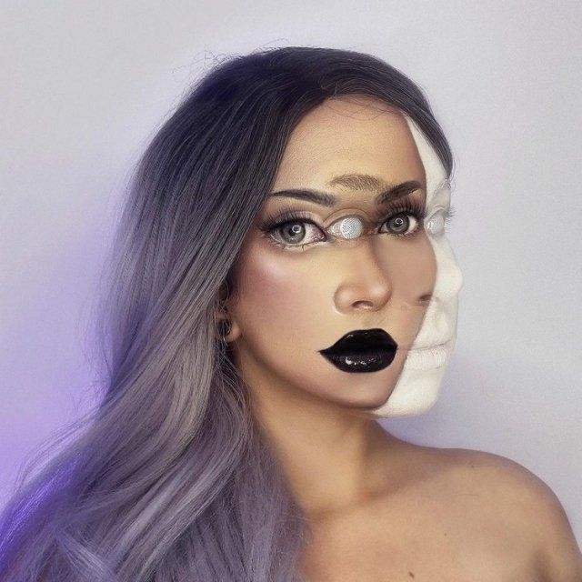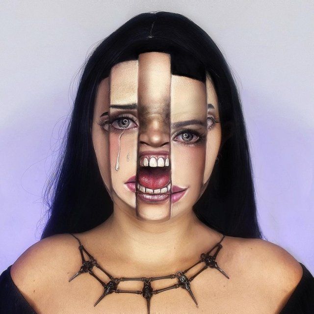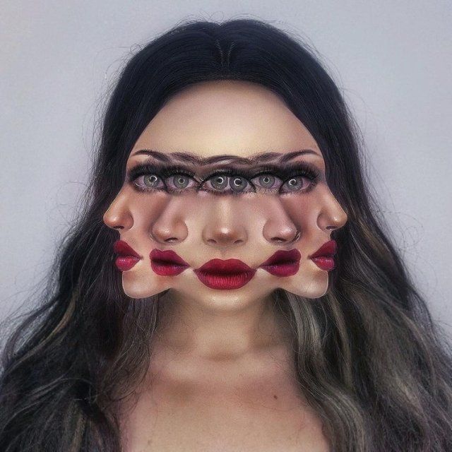 Девушка визажист создает удивительные оптические иллюзии с помощью макияжа и красок