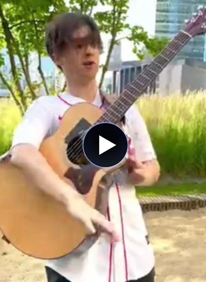 Виртуозная и очень талантливая игра на гитаре. Уметь играть на гитаре и делать это так, как этот парень - вещи очень разные. |