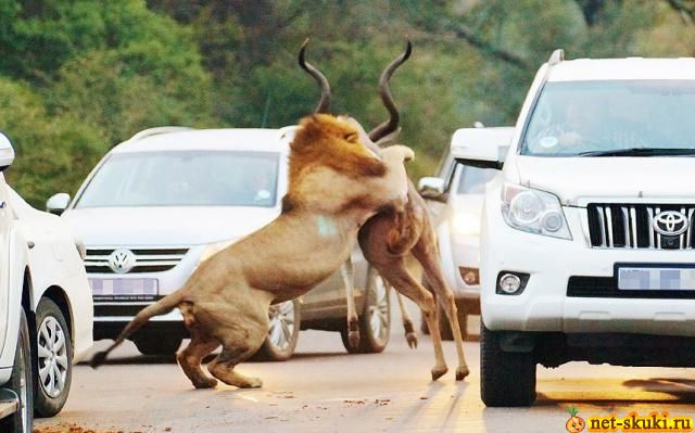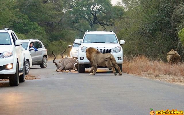 | Посетители национального парка Крюгер в ЮАР неожиданно стали свидетелями охоты львов на антилопу, которая развернулась прямо на шоссе, по которому двигалась колонна автомобилей. Люди приезжают в национальный парк Крюгер в ЮАР, чтобы насладиться красотой дикой природы. ![]() ![]() ![]() ![]() ![]() ![]() ![]() ![]()