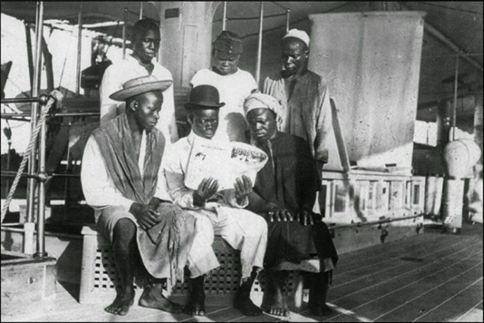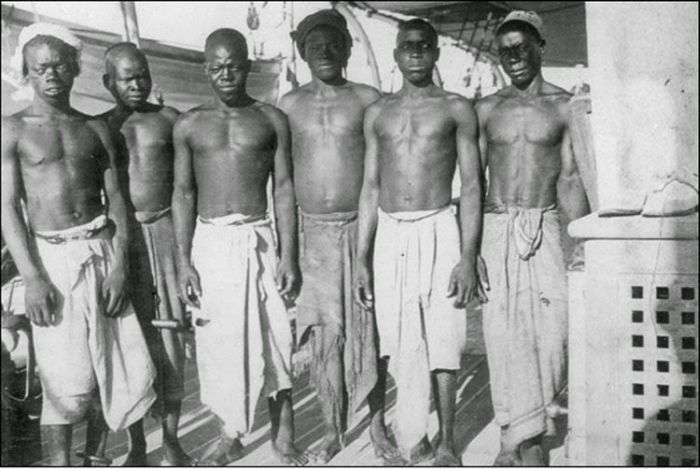 | В 1907 году моряки королевского судна HMS Sphinx, патрулируя побережье Занзибара и Мозамбика, обнаружили работорговца, везшего на продажу свой «товар». Они остановили этого человека, освободили его пленников и дали им нормальную одежду. Все происходящее они запечатлели на фотоаппарат, который был на борту корабля. Работорговец: Рабы: Новый облик освобожденных: