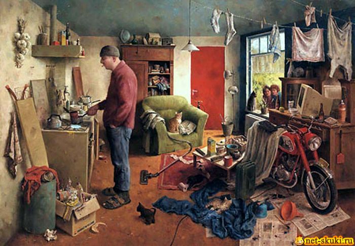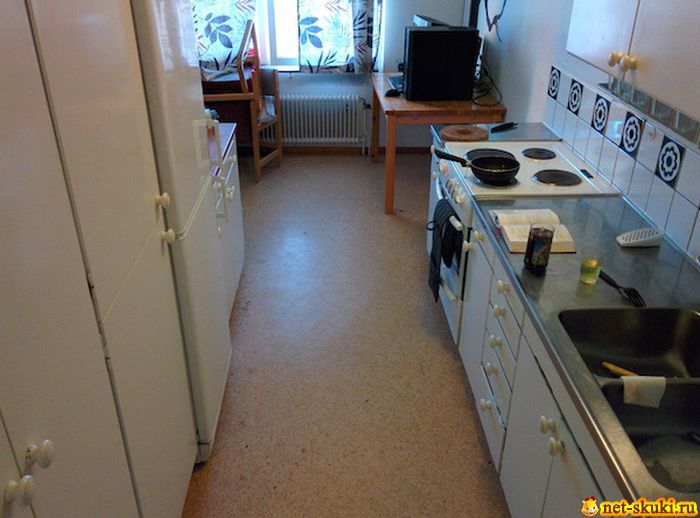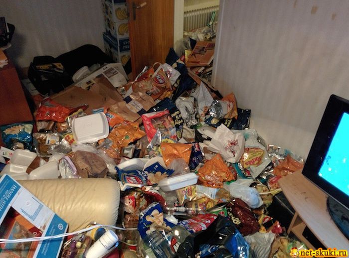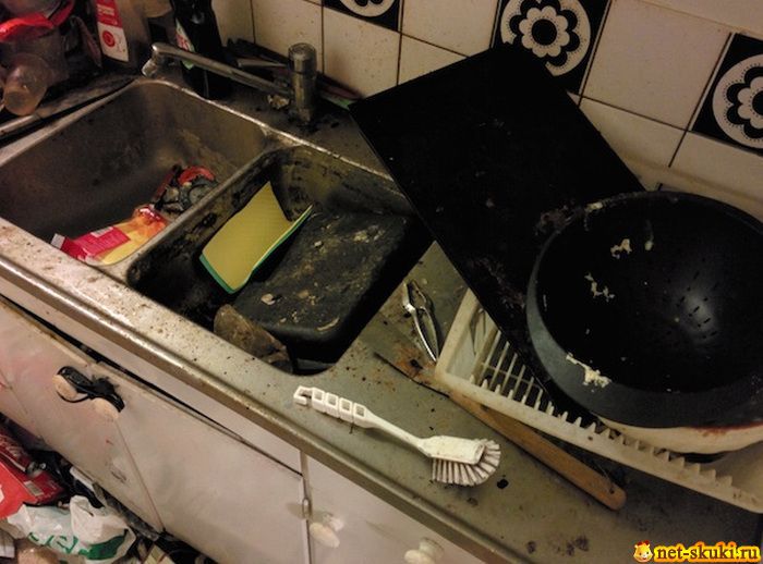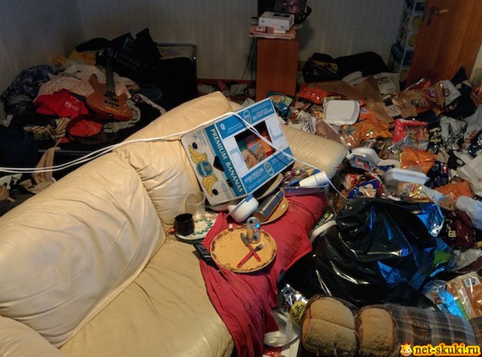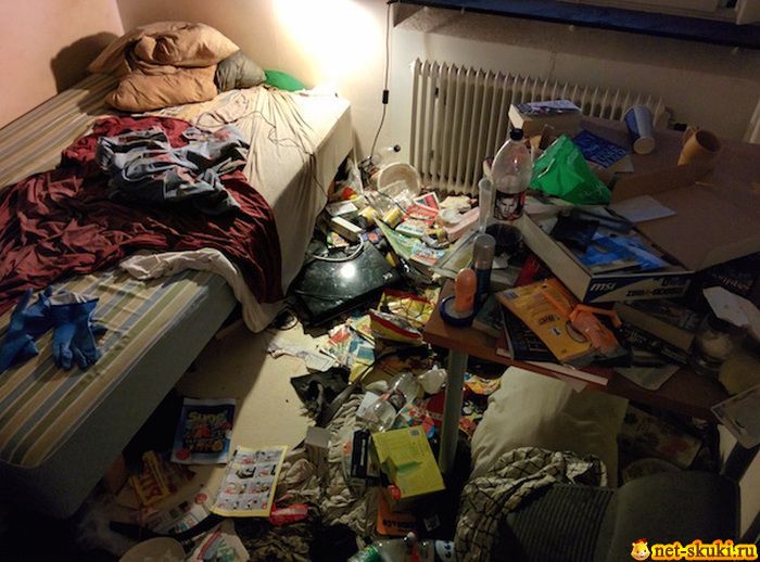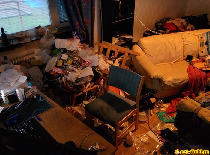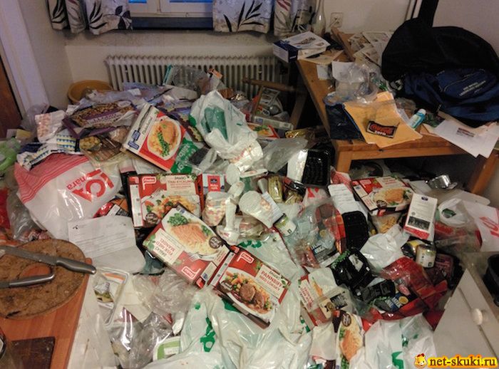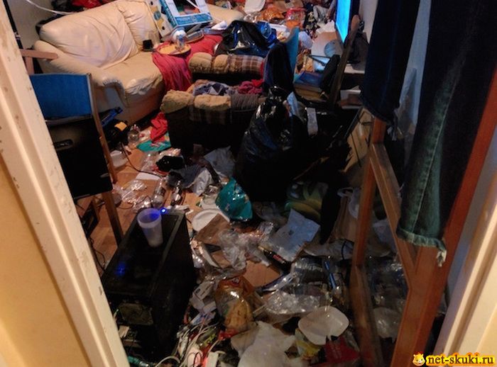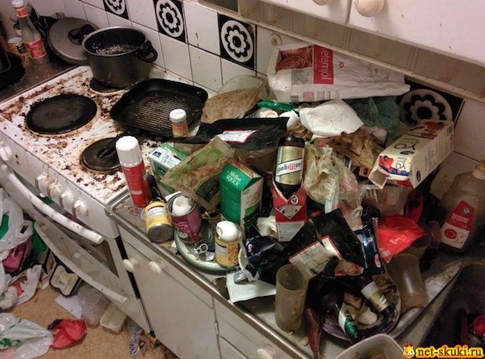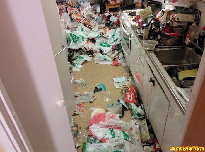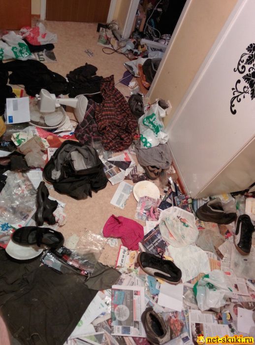 Некоторым людям необходим сильный толчок и огромный стимул, чтобы выполнить какую-то работу. Именно так и случилось с хозяином этой захламленной квартиры, который никак не мог сделать генеральную уборку, напрашивавшуюся уже очень давно. Этим стимулом для парня стало обещание девушки прийти к нему с ночевкой. Работа предстояла грандиозная. Это прихожая квартиры. Похожая картина и на кухне. Не отличалась чистотой и спальня. Туалет больше напоминает общественный. Трудно поверить, что здесь можно готовить еду. Раковина завалена немытой посудой. Гостиная, в которую невозможно никого пригласить. Компьютерный стол. Диван. Все завалено мусором. Но после 14 часов уборки, квартира заметно преобразилась. Кухня просто сверкает чистотой. А в гостиную теперь хоть можно кого-то пригласить.