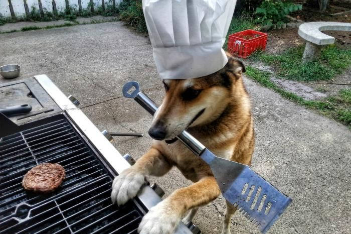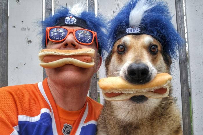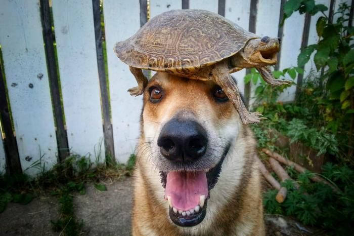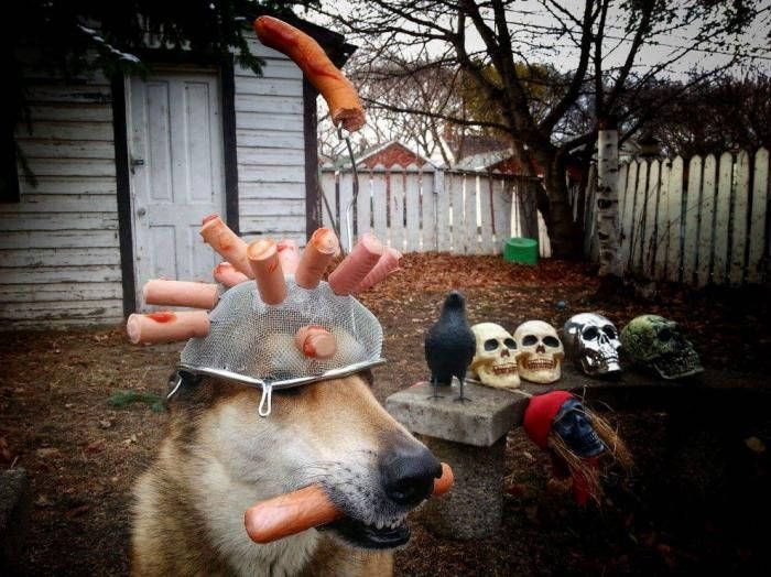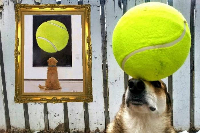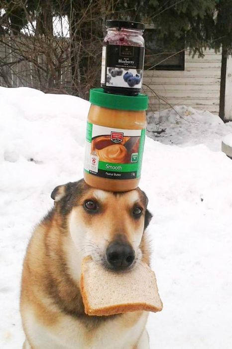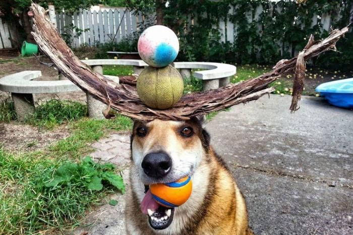 Это Тоби, 11-летний пес. Он очень любит показывать чудеса балансировки, иногда вместе со своим хозяином.