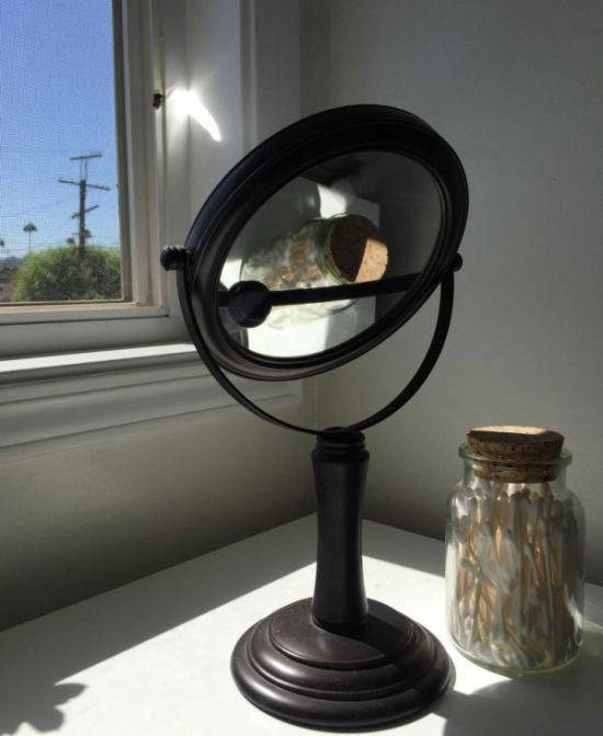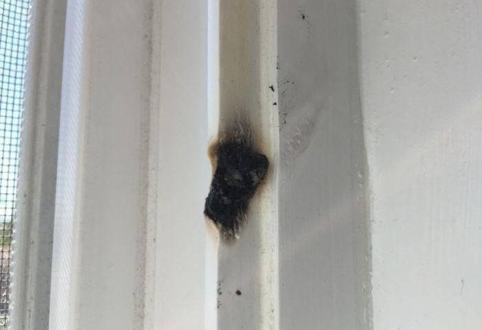Парень в солнечный день оставил на подоконнике зеркало, к счастью он вовремя заметил неладное, и отделался лишь пятном на оконной раме.