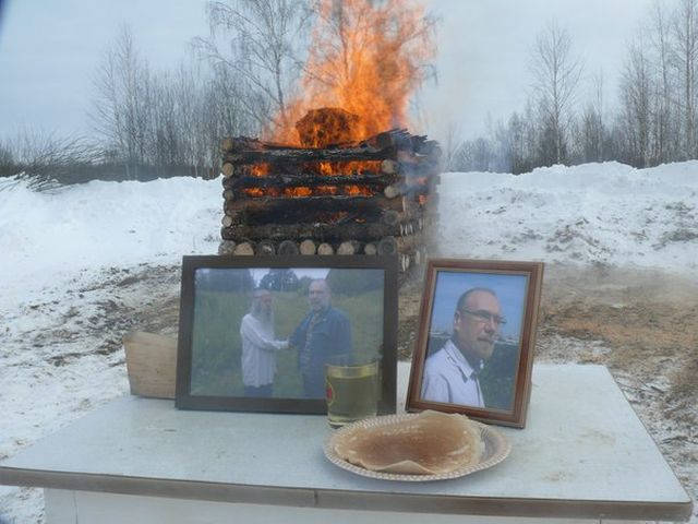 В Кировской области местные язычники организовали ритуальное сожжение своего земляка. Снимки происходящего попали в интернет. На специально собранном костре водружен гроб, который горел в течение нескольких часов. По словам участников события, это была воля самого умершего. Ничего криминального в произошедшем усмотреть нельзя, сожжение умерших не считается противоправным действием, но оно должно происходить не таким стихийным образом, демонстративно посреди улицы, а в специально отведенном месте. Действия язычников не одобрила и церковь. Source |