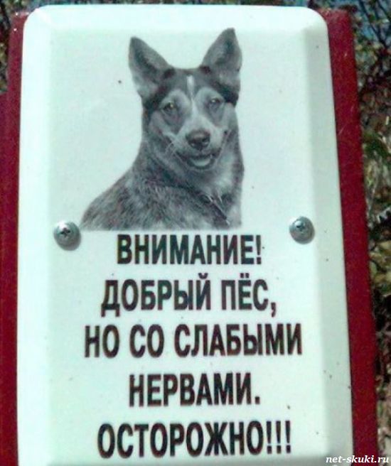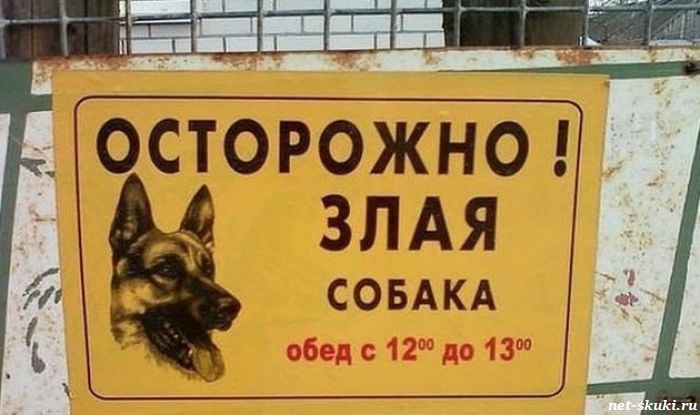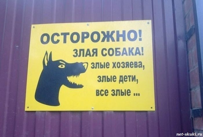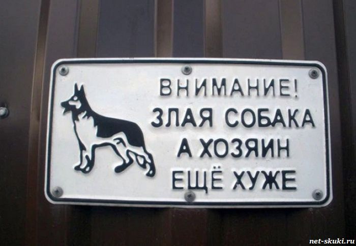 Чего только не придумают наши соотечественники, чтобы предупредить своих гостей, в том числе и непрошенных, о том, что их двор охраняется собакой. Примеры табличек с самыми забавными предупреждениями ждут вас далее. ![]() ![]() ![]() ![]() ![]() ![]() ![]() ![]() ![]() ![]() ![]() ![]() ![]()