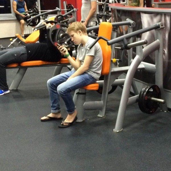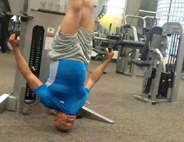 | Забавные и комичные ситуации из спортзалов. Каков прогиб Не смог разобраться с устройством тренажёра Что здесь происходит? «Простое» упражнение для плоского живота Друзья всегда поддержат Когда стесняешься позвать тренера Прости, малыш, но тренировку никто не отменял Так удобнее Если не получается сделать норму, прибегни к смекалке У этого человека стальная шея Что-то пошло не по плану Когда начал заниматься спортом Приходится выкручиваться На разогреве Продуктивная тренировка Решил проработать все группы мышц