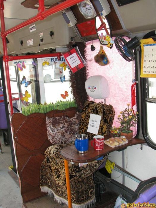 Кататься весь день в автобусе не так весело, как может показаться. Поэтому кондукторы по призванию облагораживают свои рабочие места в настоящие персональные кабинеты. ![]() ![]() ![]() ![]() ![]() ![]() ![]() ![]()