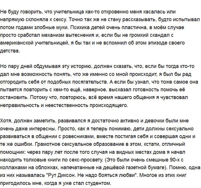 07.07.2015 Рассказ блогера, пережившего сексуальные домогательства учительницы |