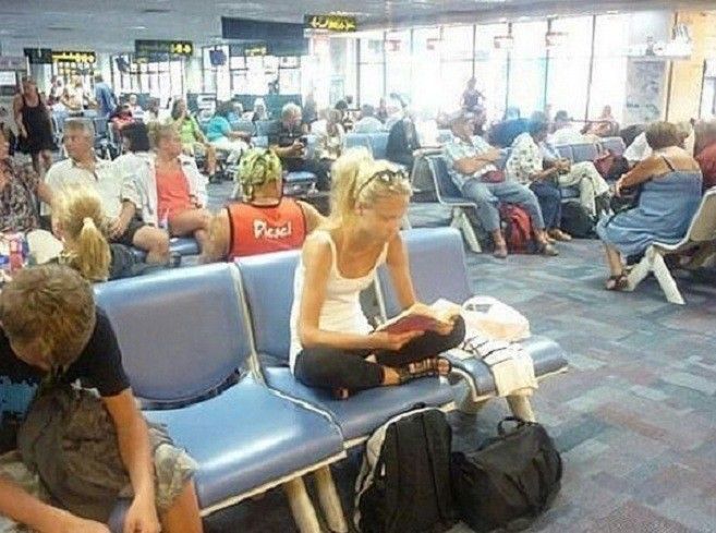 Девушка ожидала свой рейс в аэропорту. Ее рейс был задержан, и ей придется ждать самолет в течение нескольких часов. Она купила книгу, пакет печенья и села в кресло, чтобы провести время. Рядом с ней был пустой стул, где лежал пакет печенья, а на следующем кресле сидел мужчина, который читал журнал. Она взяла печенье, мужчина взял тоже! Ее это взбесило, но она ничего не сказала и продолжала читать.