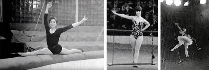 Думаю, вы все хорошо знаете, что замечательная Наталья Варлей до того как начать карьере киноактрисы выступала а цирке. Все мы хорошо её знаем в образе студентки Нины, паночки и даже тренера Марты Эрастовны, мечтающей сделать из Алисы Селезнёвой звезду советского спорта. А стать именно цирковой артиской была мечта её детства. Ради её осуществления Варлей даже пошла на членовредительство. Родители мечтали, что их дочь станет пианисткой. И вот, когда пришла пора поступать, их дочь рассекает себе палец бритвой и со словами "Я не смогу играть на фортепьяно" идёт поступать в эстрадно-цирковое училище. Вот она в балетном классе. И мечта сбылась - Варлей стала цирковой эквилибристкой Вот ещё интересное фото. Если кто не узнал - Варлей в правом верхнем углу. А в центре - Олег Попов А эти фото уже сделаны на съёмках "Кавказской пленницы" Гайдая Варлей успевала на них не только сниматься в главной роли, но и продолжать цирковые тренировки Ну и отдыхать на замечательных крымских пляжах Умудряясь даже на отдыхе попасть на обложку журнала Source |