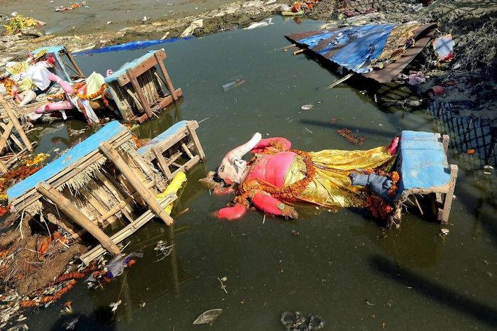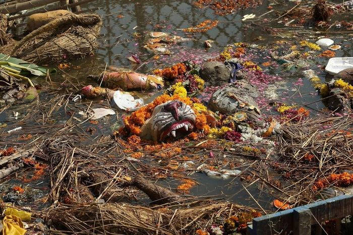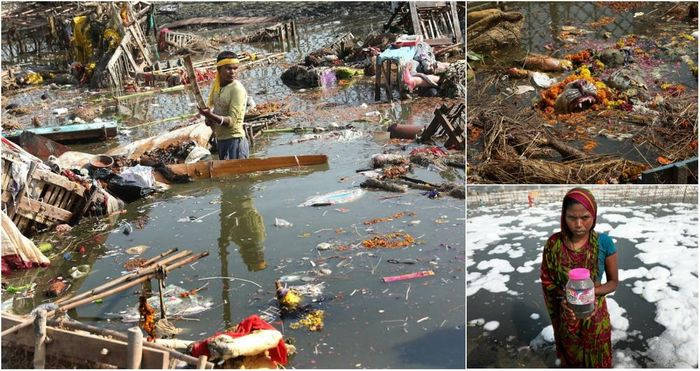 Многие реки в Индии являются священными - они участвуют во всех праздниках: в них сбрасывают множество цветов, фигур божеств (которых в Индии превеликое множество). Помимо этого, в Индии тела умерших зачастую отправляют в последнее плавание, где они частично сгорают на плотах, а частично разлагаются от агрессивной среды. И не меньший вред - от несанкционированного сброса отходов в воды. Все это приводит к тому, что воды в реках Индии ядовиты, и безжизненны. Но индусов это не останавливает.