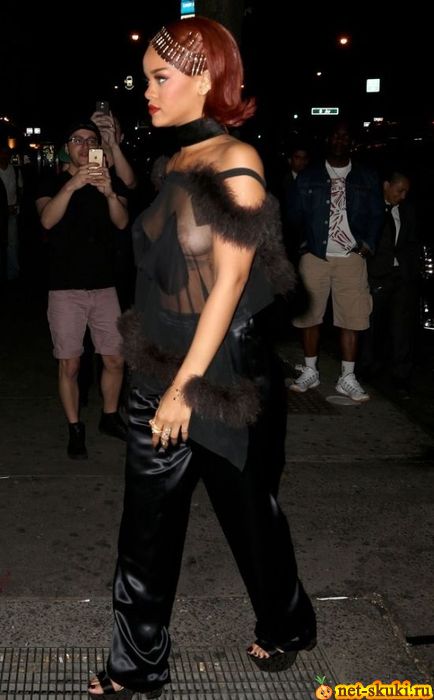 08.05.2015 Рианна в прозрачной блузке - 3 фото |