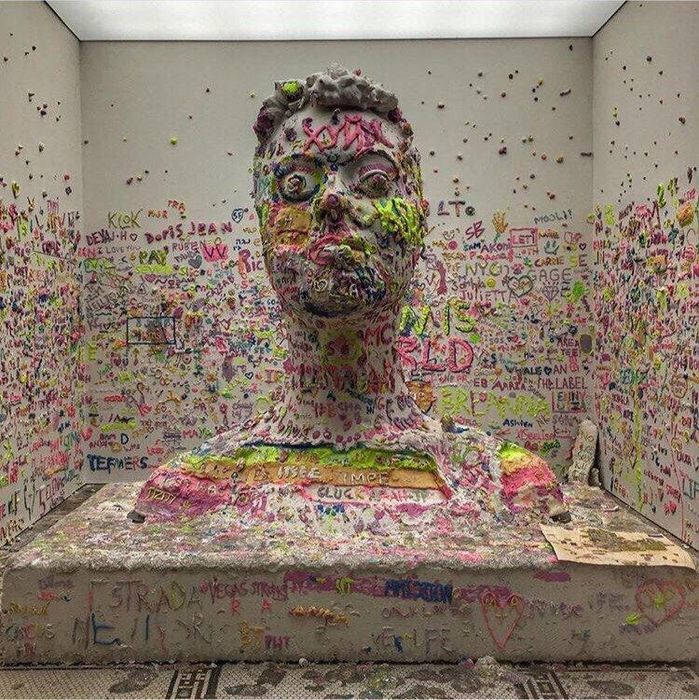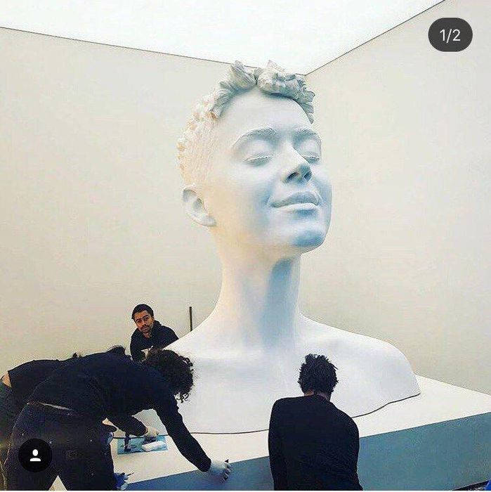 В Нью-Йорке была произведена арт-инсталляция головы Кэти Перри с ее разрешения. Всем посетителям дали право делать с работой все, что захотят, и на лбу Кэти теперь красуется русская надпись.