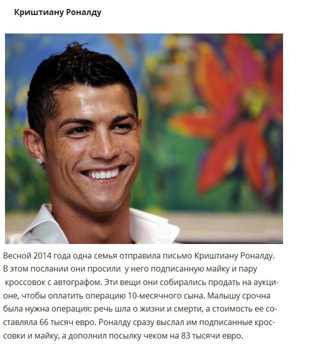 Далеко не все звезды, получая солидное состояние, перестают замечать проблемы обычных людей. Многие из них жертвуют миллионы в пользу благотворительных фондов, другие помогают конкретным людям, нуждающимся в помощи. О знаменитостях, в которых слава не затмила человечность, вам поведает этот пост.