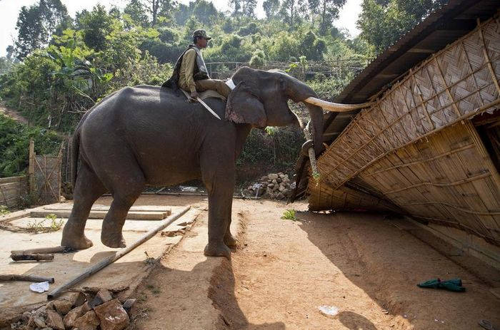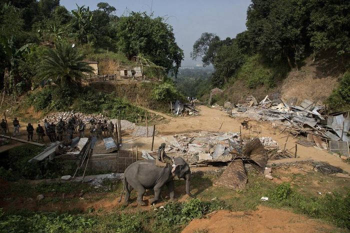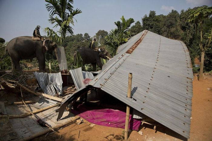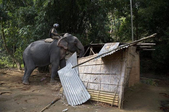 В заповеднике Амчанг на северо-востоке Индии нелегально возведено тысячи домов. Это не капитальные каменные строения, а убежища из глины, палок, жести и пальмовых листьев. Тем не менее власти штата Ассам вынесли решение снести незаконные постройки. Индийские судебные приставы использовали слонов для сноса этих лачуг. Местные жители пытались кидать камни в слонов, но полицейские разогнали их слезоточивым газом, 5 человек получили ранения.