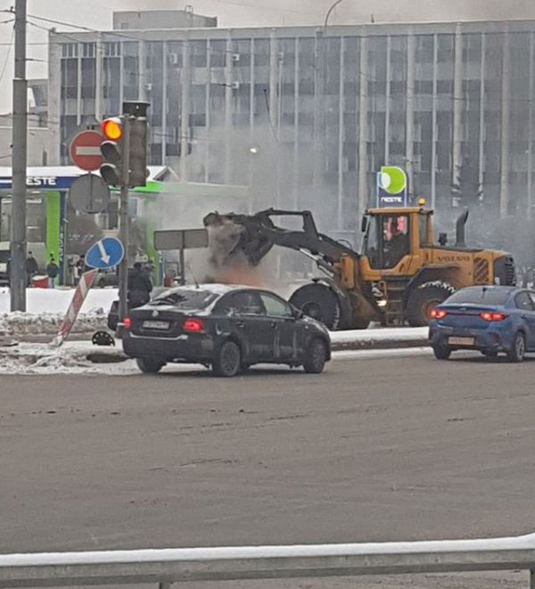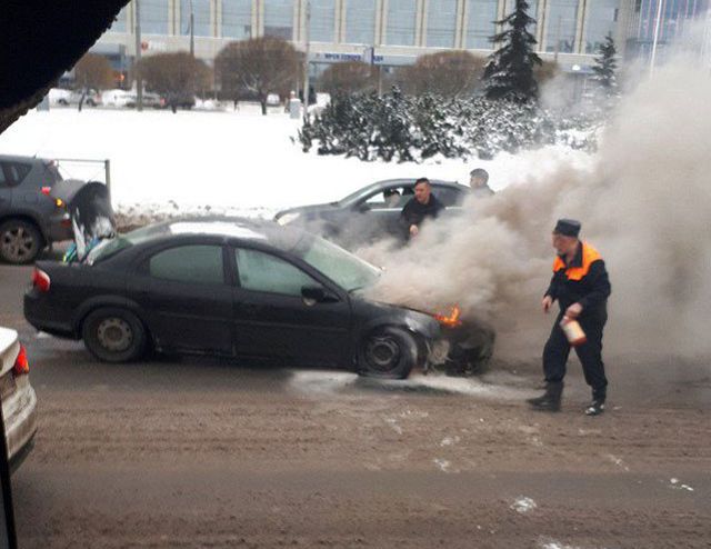 Как потушить загоревшийся автомобиль, хорошо знают питерцы. Недавно машину, которая загорелась прямо посреди дороги, потушил смекалистый водитель снегоуборочного транспорта. Он набрал полный ковш снега и вывалил его прямо на автомобиль.